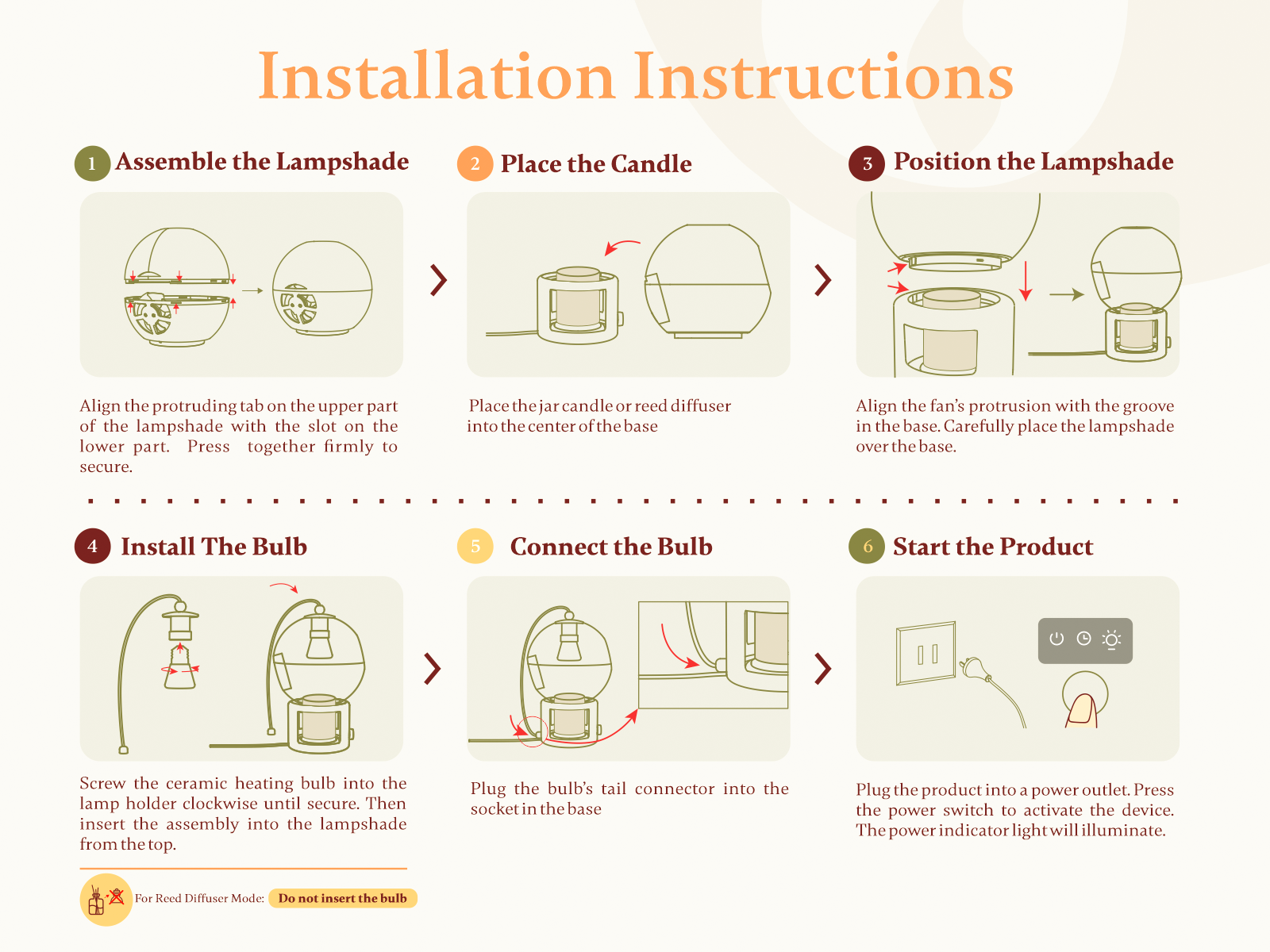 Supports various candle sizes and reed diffusers, height-adjustable heat for even diffusion.
